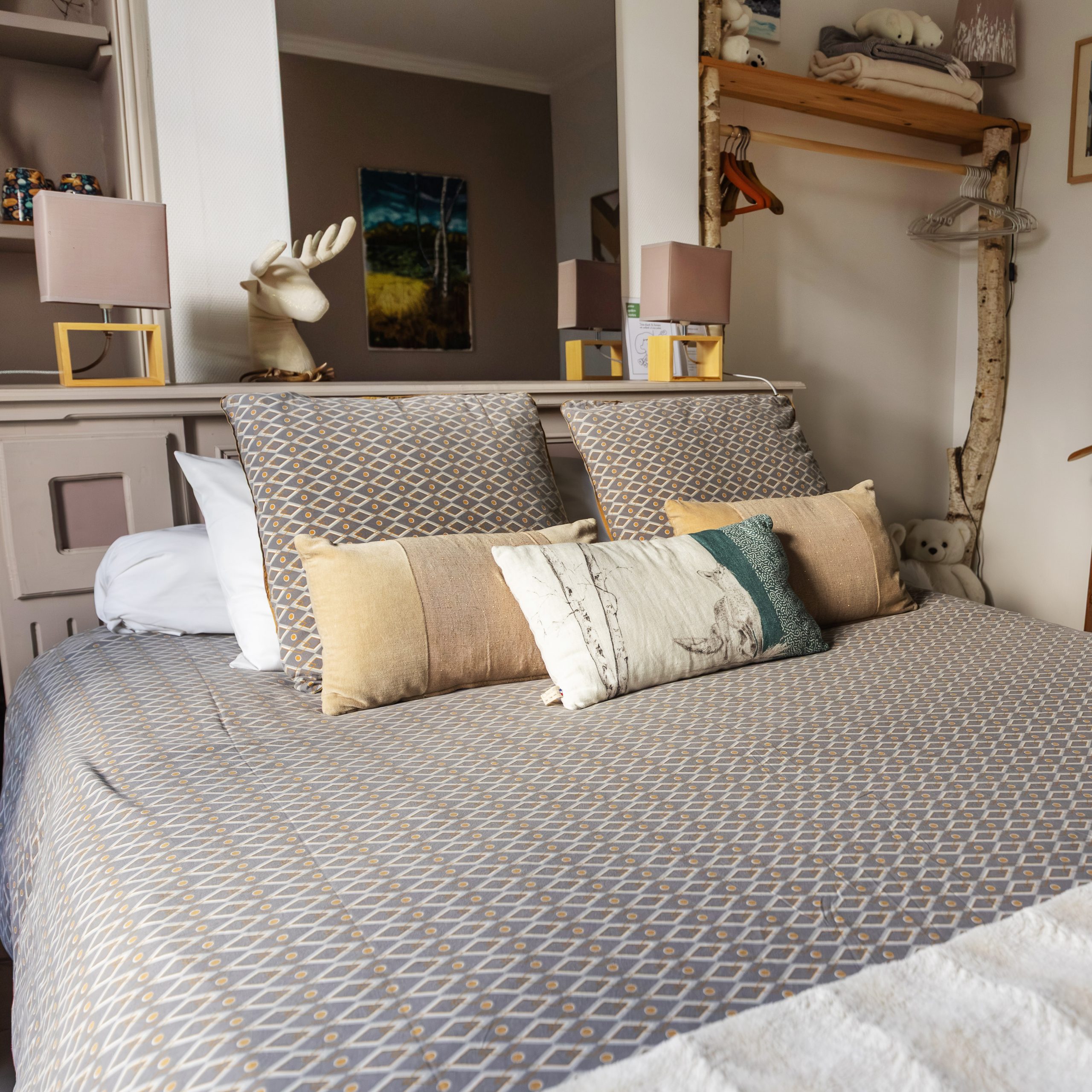 Venez vous reposer dans son lit Queen size, rêver au bruissement de l’eau et aux sons des oiseaux