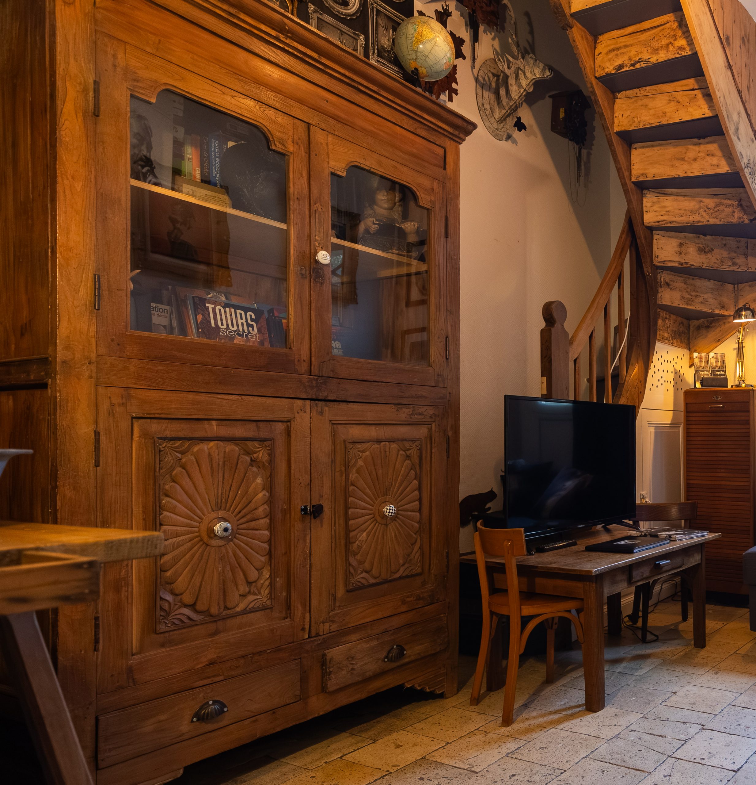 Voyageurs, bricoleurs, chineurs, nous ont permis de rénover cette belle bâtisse endormie de 240m², avec dans chacune de nos pièces un atmosphère de voyage, de curiosité, de chaleur.